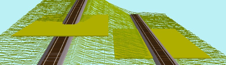 3D_Fläche.te3 mit TEdit3D von WinTrack erstellt | Anwendung in der 3D-Ansicht.links Gleis mit Steigung, rechts ebenes Gleis |
