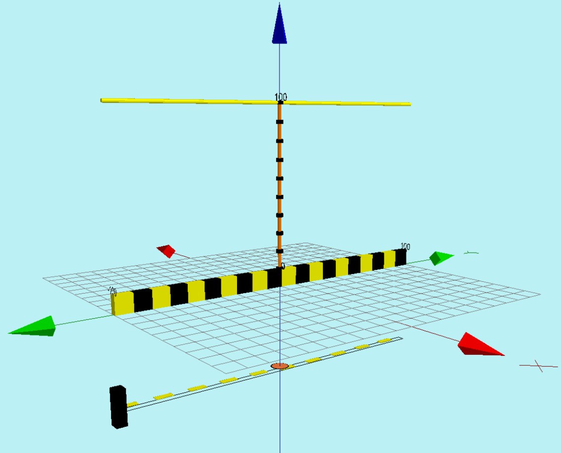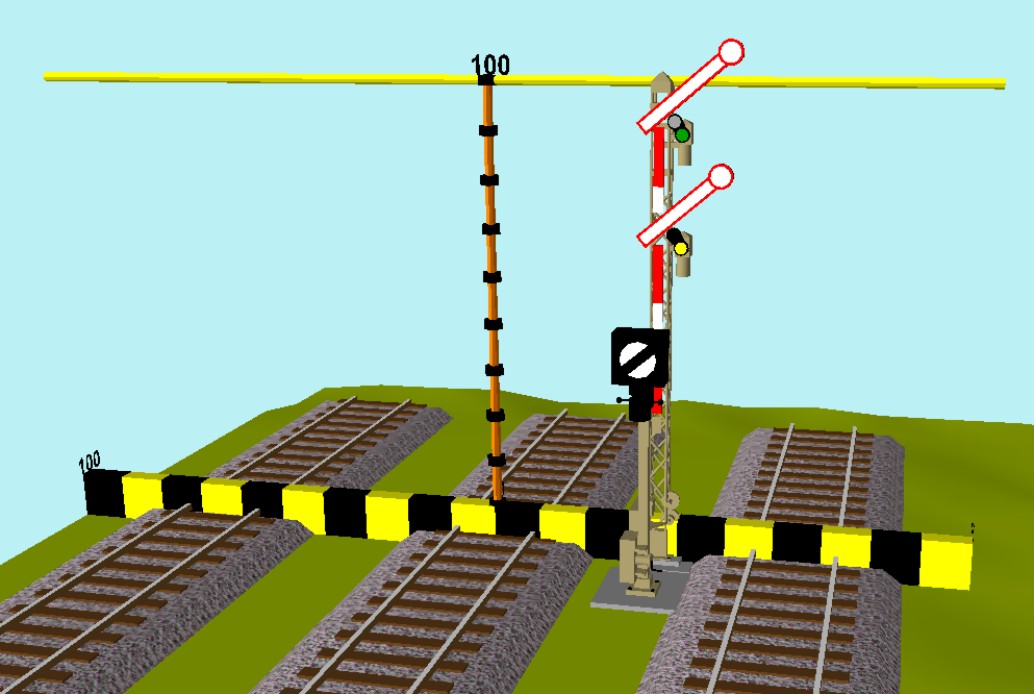 3D_Lineal.te3 mit TEdit3D von WinTrack erstellt | an 3 Gleisen im 2D-Plan eingefügt | in der 3D-Ansicht; die Signalhöhe ist mit 100 mm ablesbar |