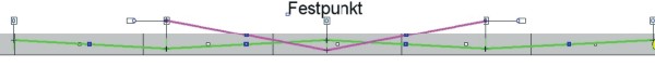 Beispiel 4: Festpunkt. Da Fahrleitungen und Tragseile thermischen Ausdehnungen unterliegen, müssen sie in Abständen nachgespannt werden, was durch Abspannmasten mit Spannwerken erfolgt. Es entstehen so genannte Abspannstrecken (Beschreibung siehe Beispiel 5 und 6). Etwa mittig je Abspannstrecke befindet sich ein Festpunkt, dieser verhindert, dass Leitungen einseitig entweder zum linken oder zum rechten Abspannwerk gezogen werden können.