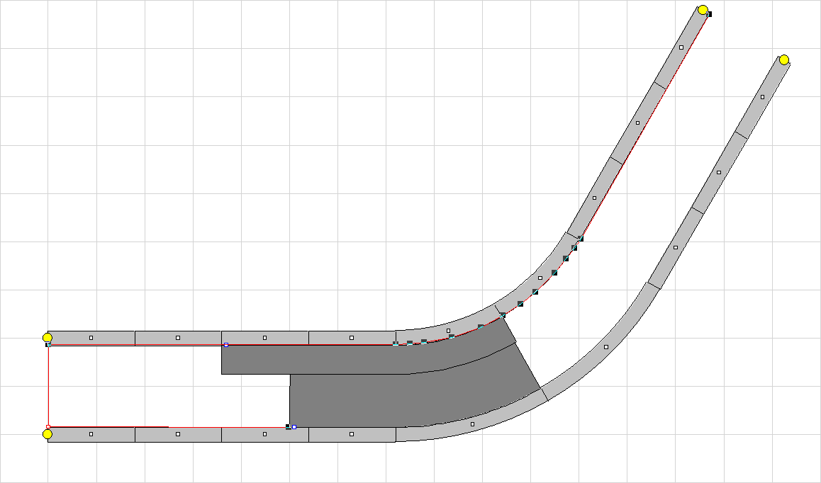 Anmerkung: diese Hilfsobjekte (Spante, Gleisstück) kann man in einer "Hilfsebene" erstellen, welche man dann leicht im Programm ein- und ausblenden kann (sichtbar, nicht sichtbar).