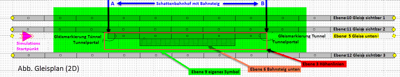 Tunnelstrecke markiert ist, um in diesen Bereich ein Bahnsteig erzeugen