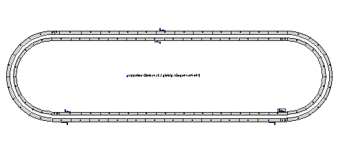 Jetzt möchten wir eine 2 gleisige Hauptstrecke (Gegenverkehr) realisieren. Wir beginnen wieder mit einem einfachen, langweiligen Gleisoval. Zwei mal drei Blockstellen ermöglichen das gleichzeitige Fahren von zwei mal zwei Zügen. |