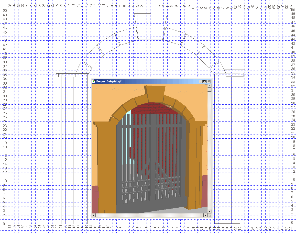 Hier ein Beispiel eines Torbogens auf Millimeterpapier