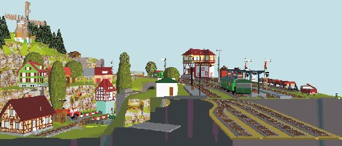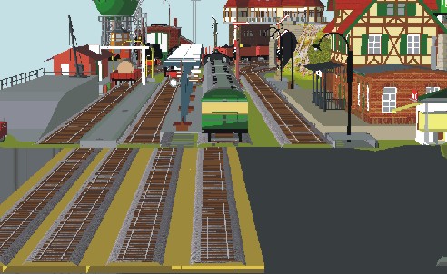 Anmerkung: die Oberleitung im obigen Download ist relativ einfach konstruiert. Wie eine Oberleitung professioneller dem Vorbild nachempfunden werden kann, ist an einigen Grundkonstruktionen im Abschnitt Oberleitung erklärt.
