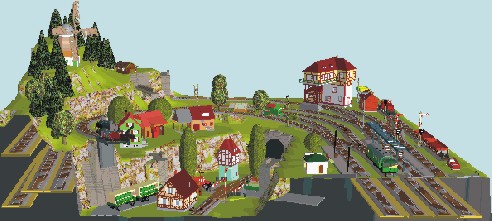 6. Bei dieser Grundfläche mussten natürlich Kompromisse in Steigung und Kurvenradien eingegangen werden, die aber bei nicht zu langem Wagenmaterial vertretbar sind. Jene, die über mehr Platz verfügen, können leicht in Länge und Breite gerade Gleise einfügen, um Steigungen zu minimieren, oder um größere Kurvenradien zu realisieren.