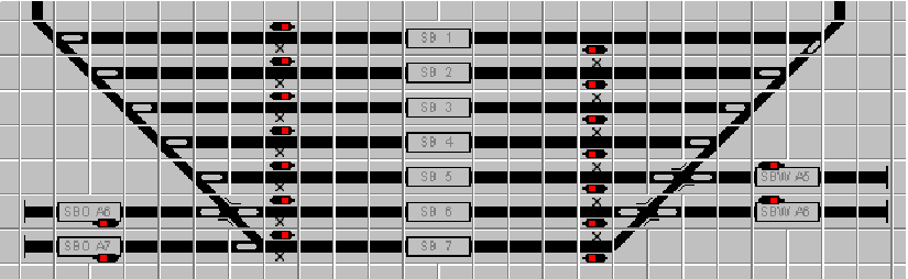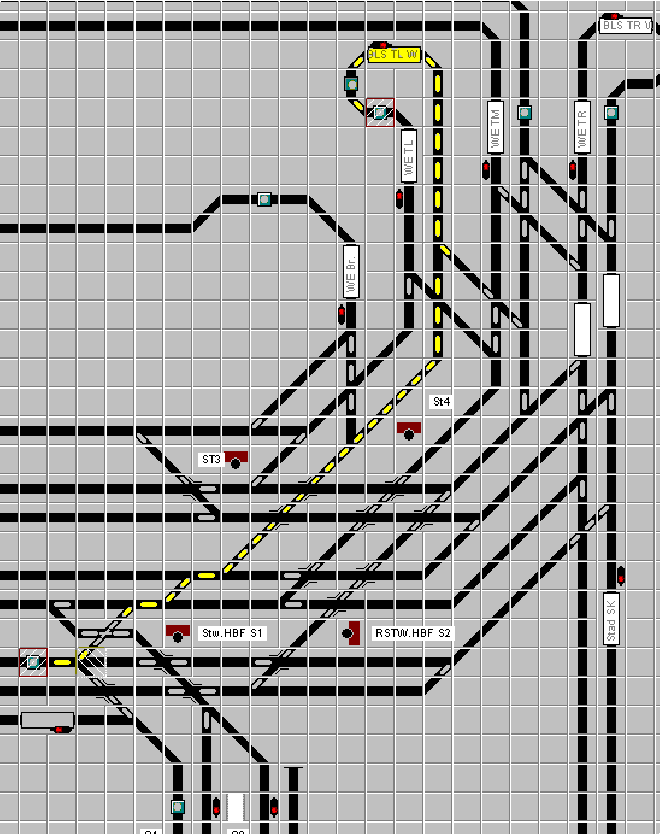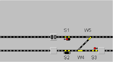 Das hat zur Folge, das bei Zugfahrtautomatik die Fahrstraße von S8/9 nach S2 die Weiche W10 zwar korrekt auf Abzweig gestellt wird, das Signal jedoch (obwohl dreibegriffig) stets nur grün anzeigt.